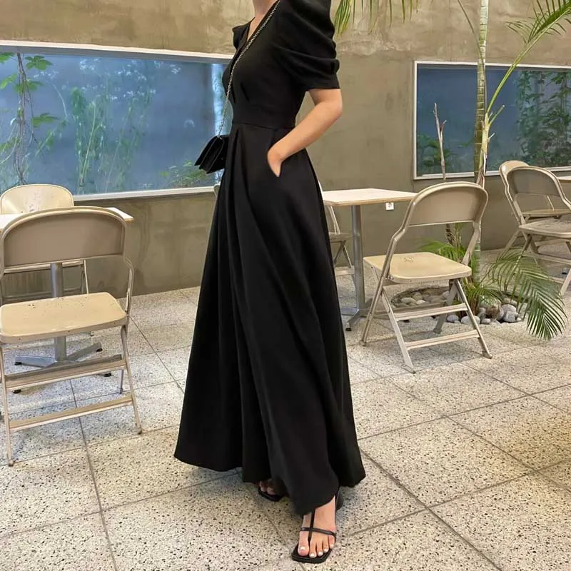 One-Piece Women Maxi Dress Party Office Fashion Summer New Dresses 2021 Korean Elegant Slim V-Neck Short Sleeve For Ladies Dress