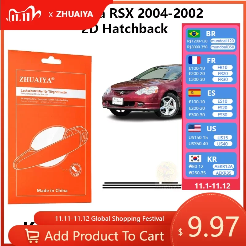 Защита для края двери ZHUAIYA, защитная пленка для ручки двери, ТПУ PPF для Acura RSX 2006-2002 2D, автомобильные аксессуары для хэтчбека