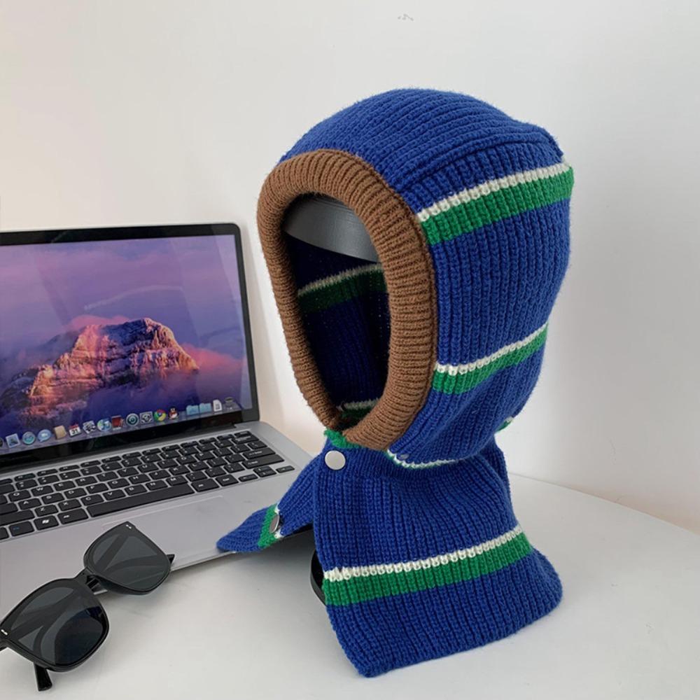 Защита ушей, рукав, шапка, теплая, контрастного цвета, шапка, шарф, вязаная шерстяная шапка, осень-зима синий