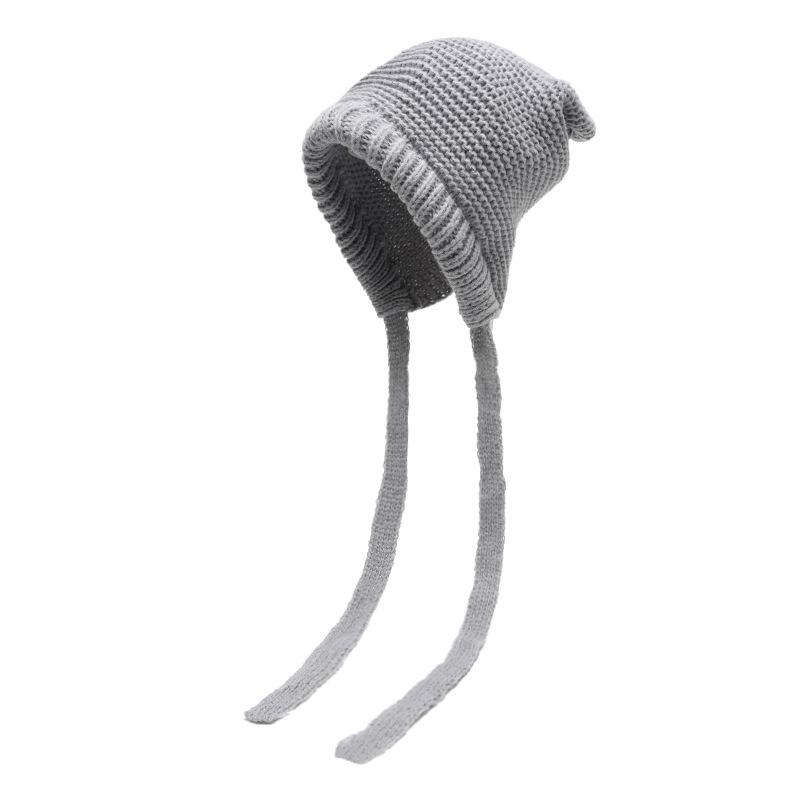 Защитная вязаная шапка со шнуровкой, женская осенне-зимняя теплая шерстяная шапка серый