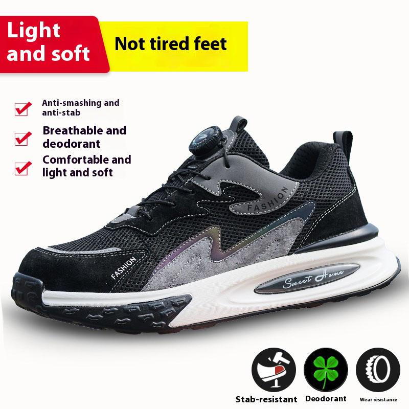 Защитная обувь с вращающейся кнопкой, мужские рабочие кроссовки, неразрушимая обувь, защитная обувь с защитой от проколов, рабочие ботинки, обувь со стальным носком 43 чёрный
