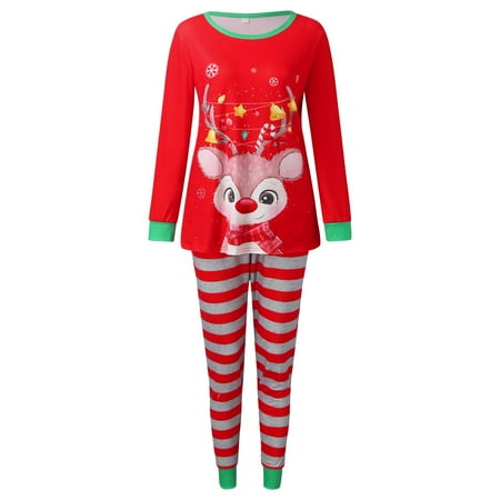 NEGJ Christmas Pjs Deer Striped Print Long Sleeve T Shirt Top And Pants Xmas Sleepwear Holiday Family Matching Pajamas Outfit