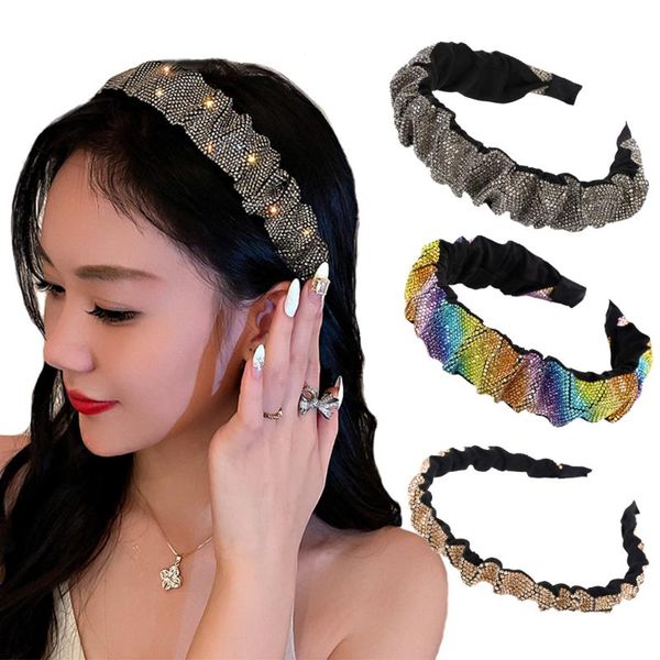 hair accessories awaytr fashion women headband shining rhinestone headwear pleated hairband bezel hoop luxurious 2021