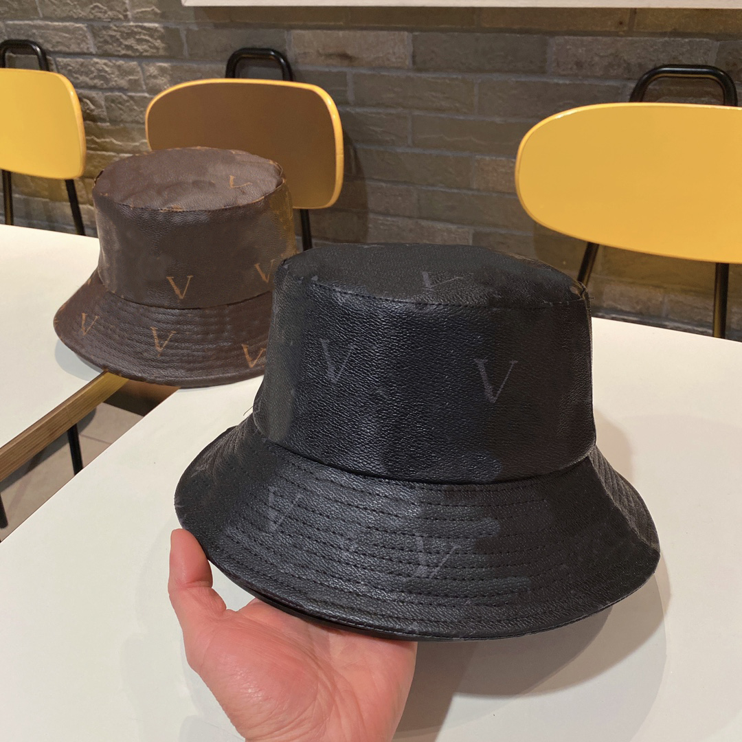 Designers Wide Brim Hats Bucket Hats for Men Woman PU Leather Presbyopia Baseball Caps Beanie Casquettes Fisherman Buckets Hats Patchwork with High Quality, Black