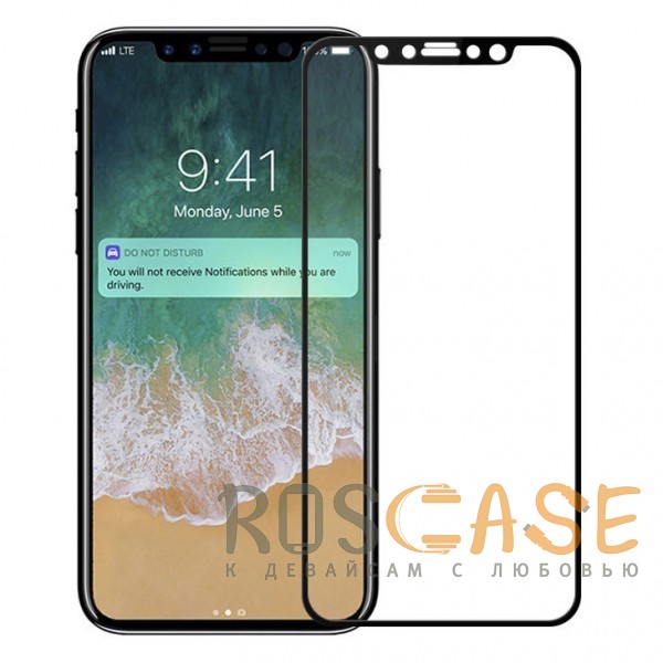 Защитное стекло с цветной рамкой на весь экран для Apple iPhone X (5.8")/XS (5.8") + пленка (Черный)