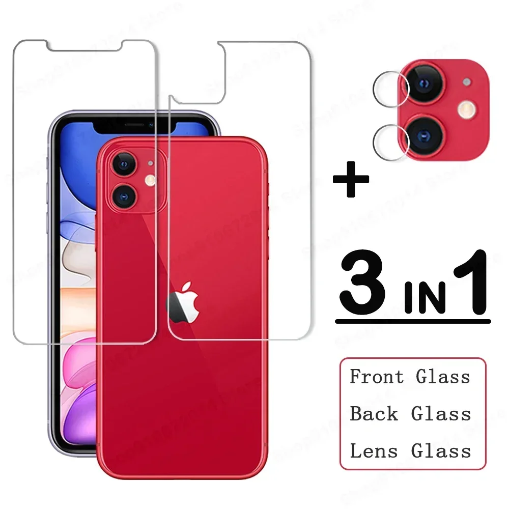 Защитное стекло 3 в 1 для iPhone, пленка для защиты экрана с передним и задним стеклом для iPhone 15, 13, 12, 11 Pro Max, XS, XR, X, 7, 8 Plus, 14 Pro Max