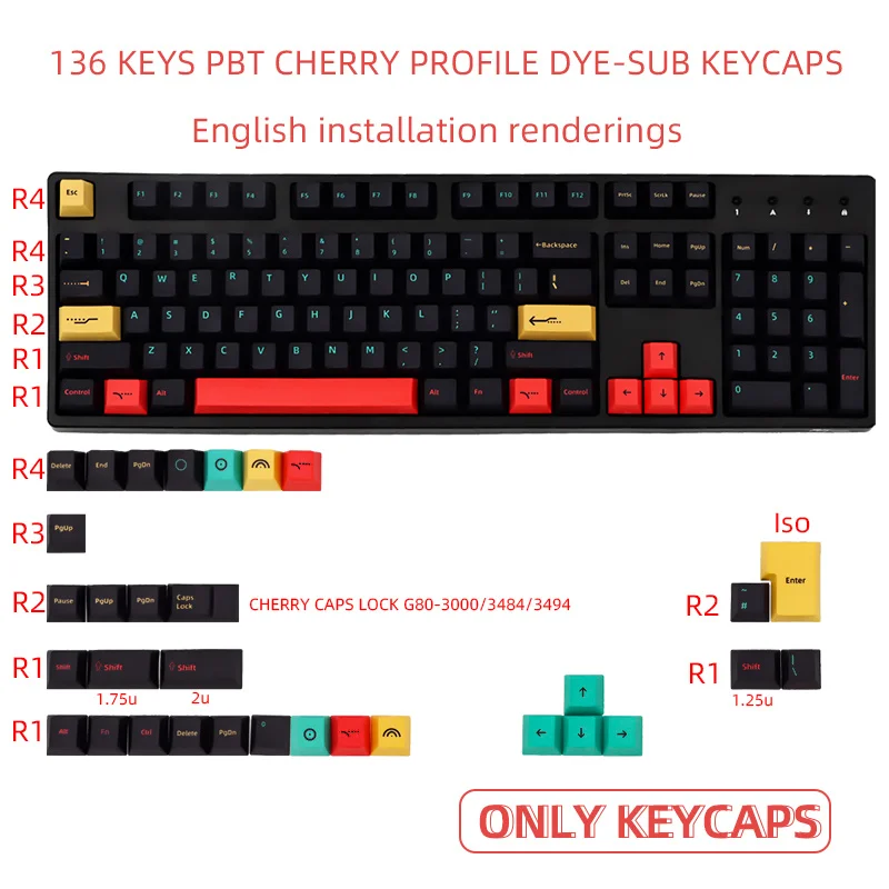 136 Keys/set keycaps Cherry Profile PBT Key Caps For MX Switch Mechanical Keyboard Dye Sub ISO keycap