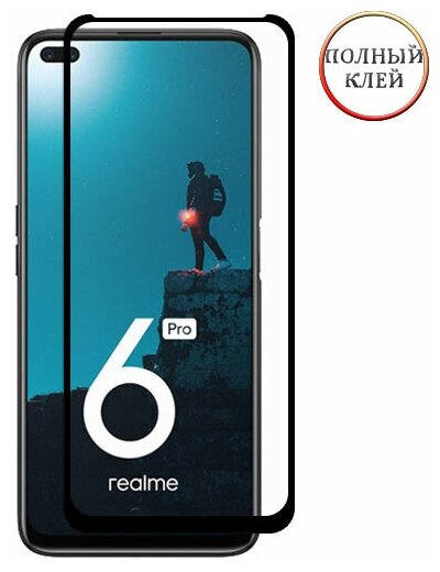 Защитное стекло Red Line для экрана смартфона Realme 6 Pro, Full screen, ударопрочное, поверхность с защитой края от сколов, черная рамка (УТ000027517)