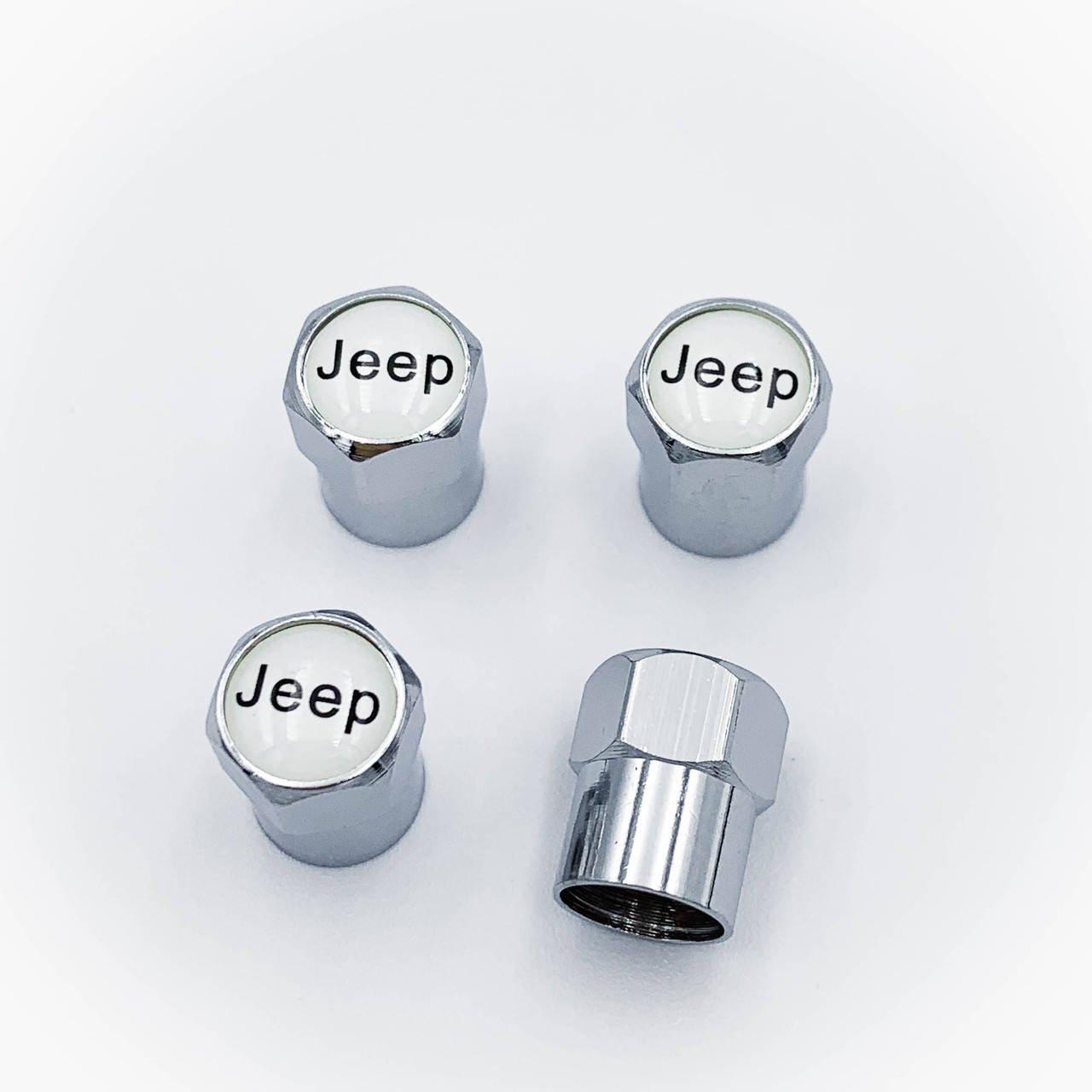 Защитные колпачки на ниппеля JEEP (Джип) 4 шт Белый фон Хром