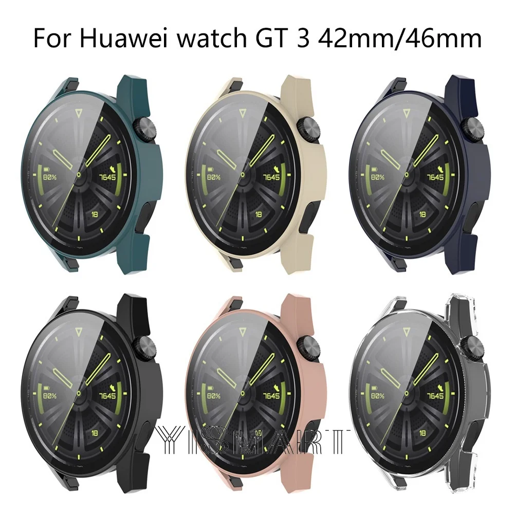 Защитный чехол + Защита экрана для Huawei Watch GT3 42 мм 46 мм, чехол с закаленным стеклом GT 3, жесткий корпус из поликарбоната для умных часов