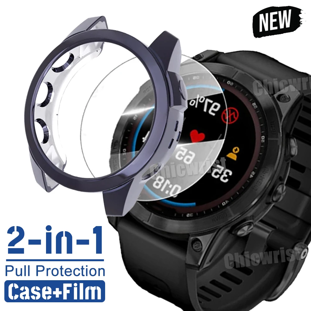 Защитный чехол 2-в-1 + Защита экрана для смарт-часов Garmin Fenix 7 7S 7X, силиконовый чехол и закаленное стекло 6 6S 6X Pro 5