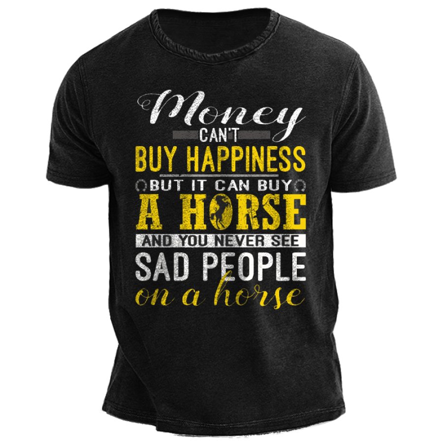 За деньги нельзя купить счастье но за них можно купить лошадей. Что практически то же самое мужская футболка с круглым вырезом