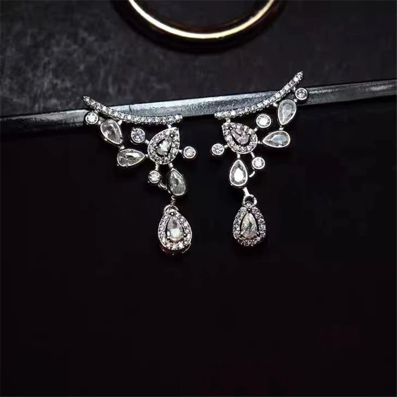 Trendy 14K Real Gold Sector Geometric Crystal Long Drop Earrings for Women Temperament Jewelry S925 Silver Needle AAA Zircon