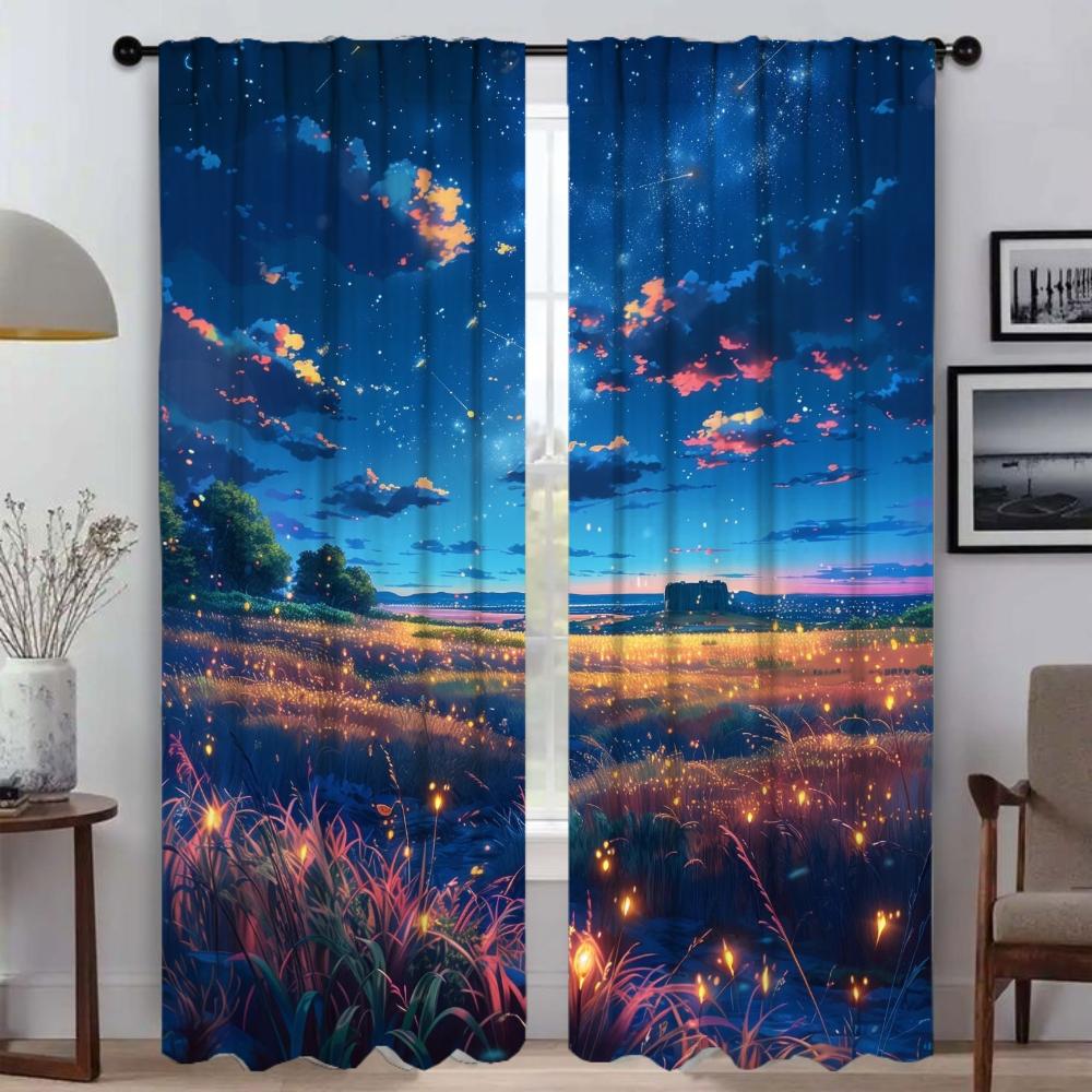 Звездная ночь затемняющие шторы для комнаты 2 панели элегантные шторы для комнаты разделительные жалюзи тюль для спальни Хэллоуин украшения для детей W50xH70cmx2pcs-CL