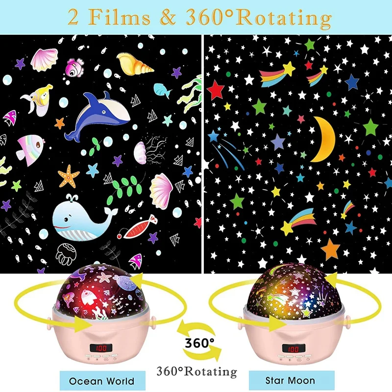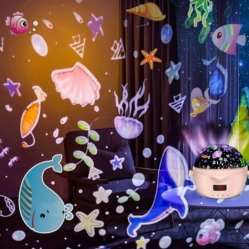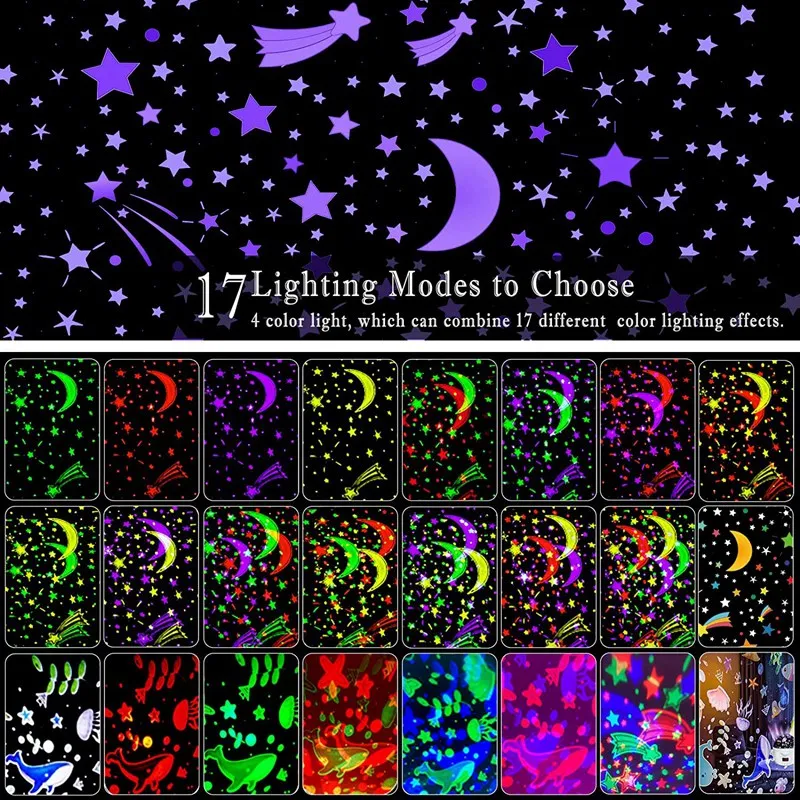 Звездный проектор, детский проектор с таймером, 17 режимов освещения, 4 цвета, вращение на 360 градусов