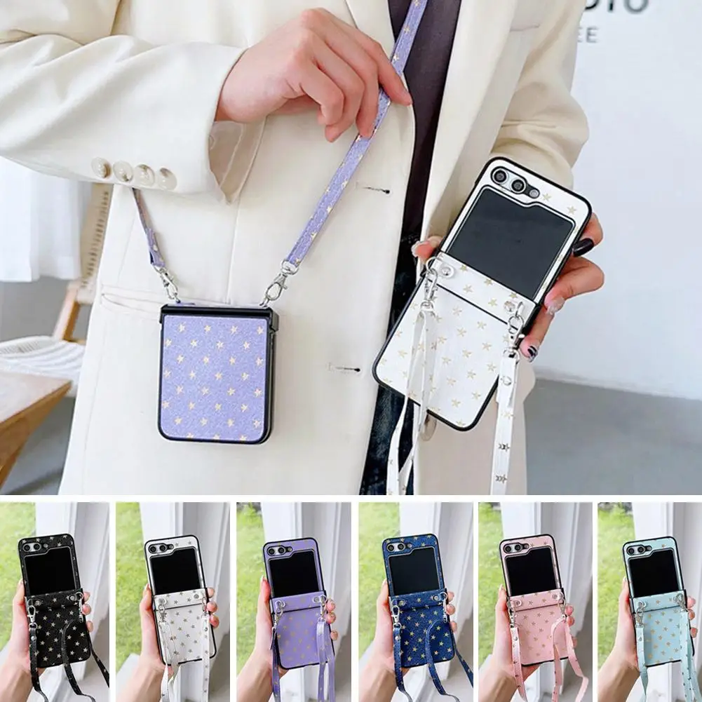 Звездный чехол для телефона Samsung Galaxy Z, флип-чехол 5 дюймов, складная задняя крышка с регулируемым ремешком для телефона, модный противоударный чехол Q1J9
