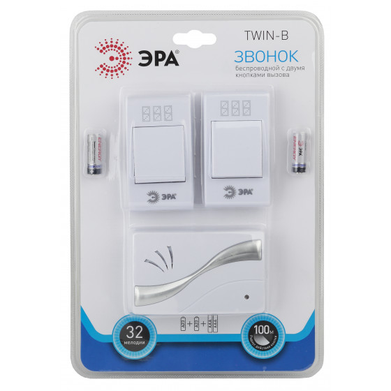 Звонок беспроводной ЭРА Б0019877, с двумя кнопками, белый (Б0019877), Б0019877