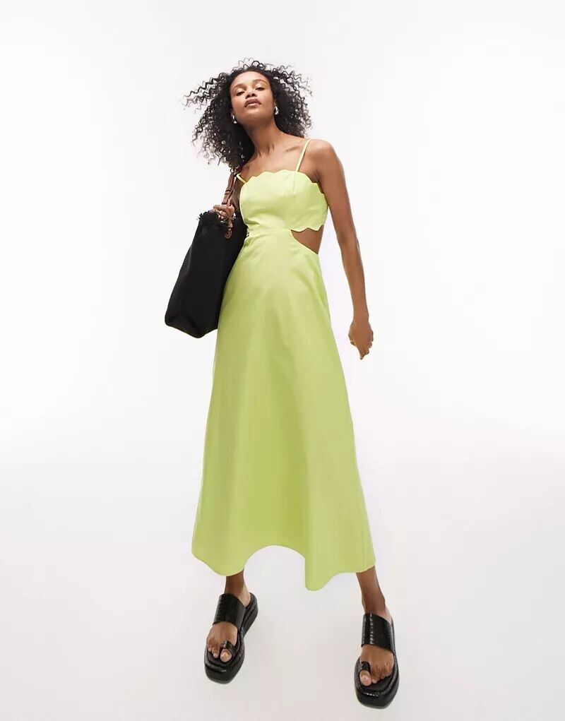Зеленое платье миди с фестонами Topshop, Зеленый, Зеленое платье миди с фестонами Topshop