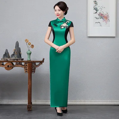 Зеленые женские вечернее Ципао Свадебная вечеринка платье в традиционном китайском Стиль Qipao Длинные платья в ретро-стиле Vestido S-4XL