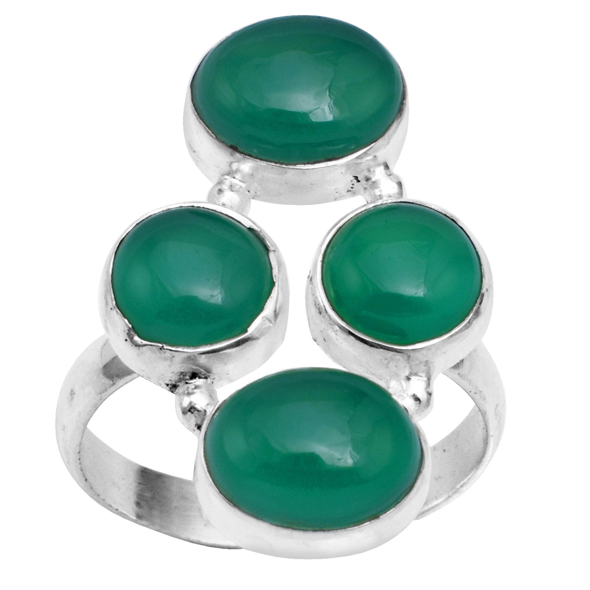 Зеленый Оникс Драгоценный Камень Кольцо Ручной Работы Ювелирные Изделия Твердые Стерлингового Серебра 925 Подарок Для Нее Бесплатная Доставка