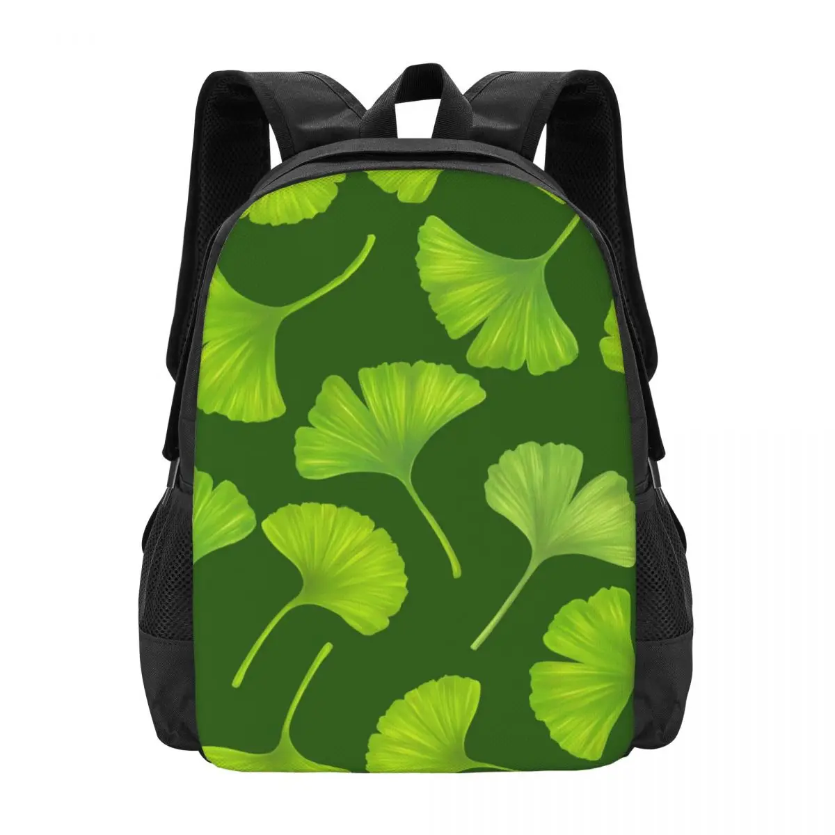 Зеленый Рюкзак Ginko Biloba, милые дорожные рюкзаки с принтом листьев, прочные школьные ранцы для девочек, уличный рюкзак
