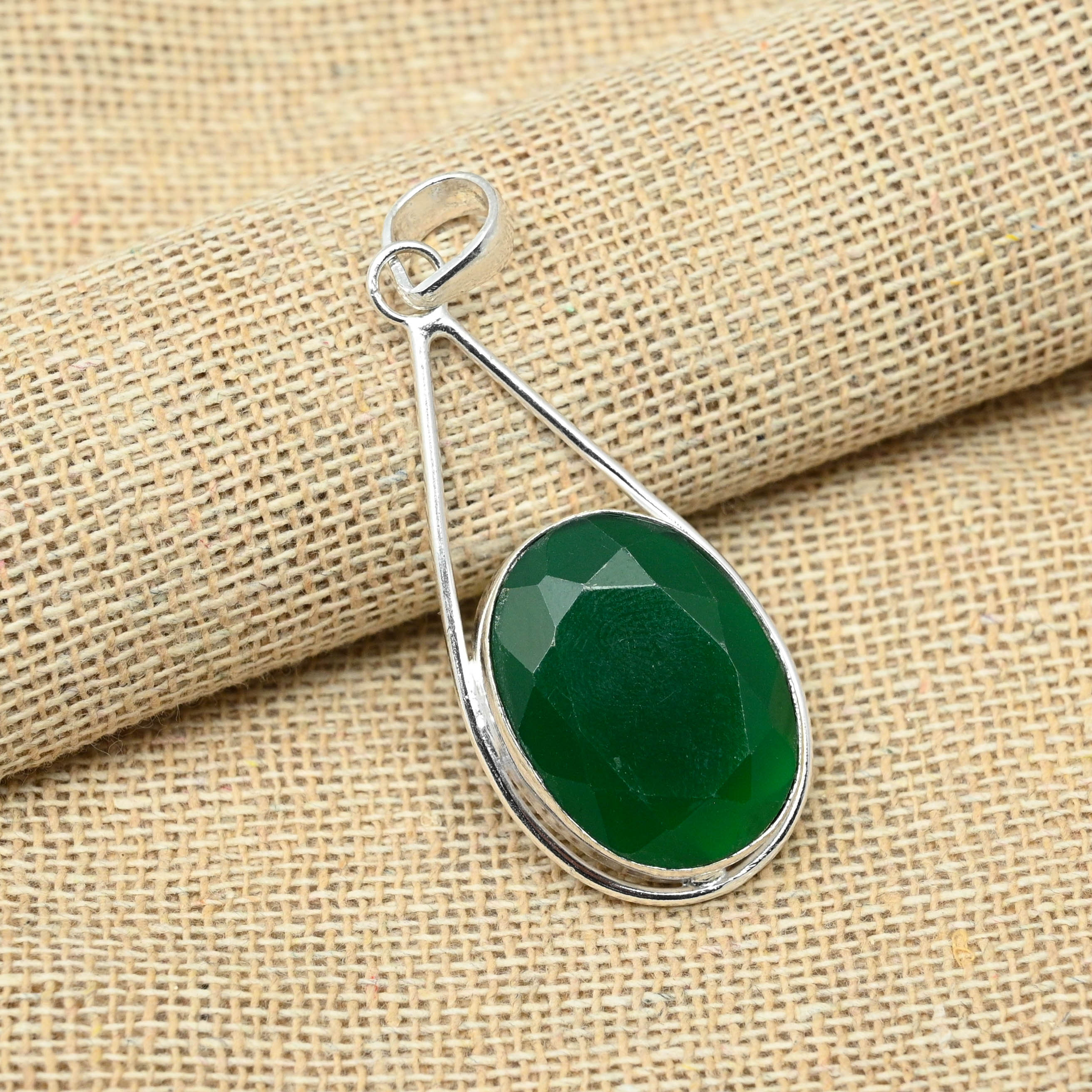 Зеленый оникс драгоценный камень 925 твердое серебро ручной работы овальной формы кулон ювелирные изделия 2.16 Inches зелёный