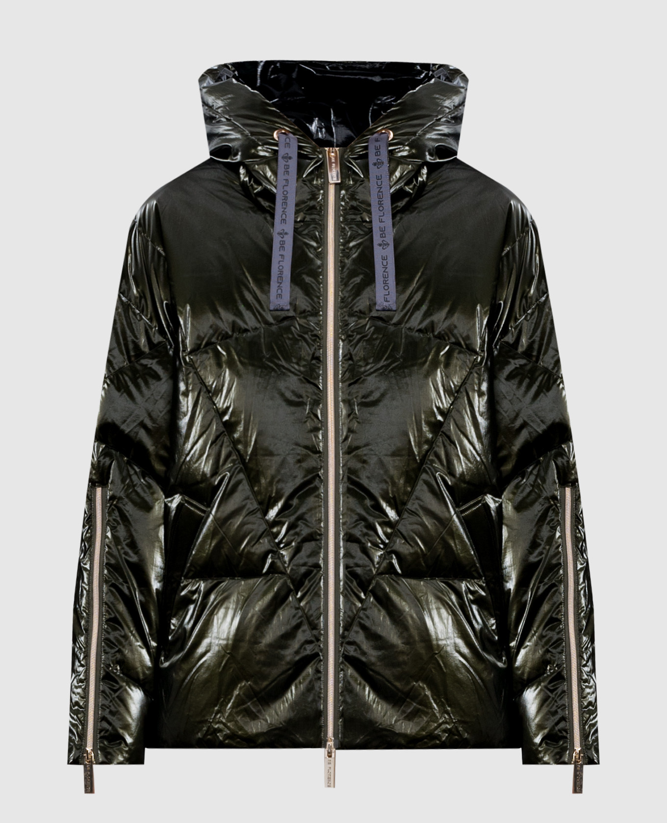 Зеленый стеганый пуховик с блестящей текстурой, Пуховики