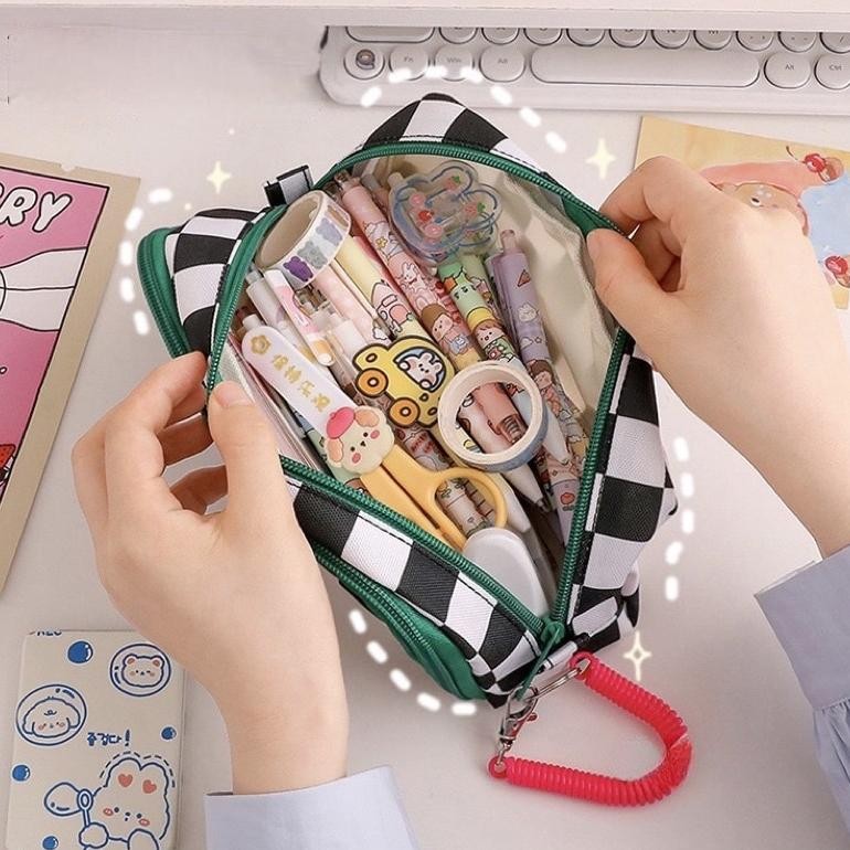 hj-45 TBE - Kartun Beruang Pensil Sleting Korea Aesthetic Lucu Import / Pencil case/Premium/Plaid / Zipper/ Kompartmen/ Imut/ Cute/ kelinci/ rabbit/ Alat Tulis Siswa Sekolah Tas Kanvas Tas Gadis Viral