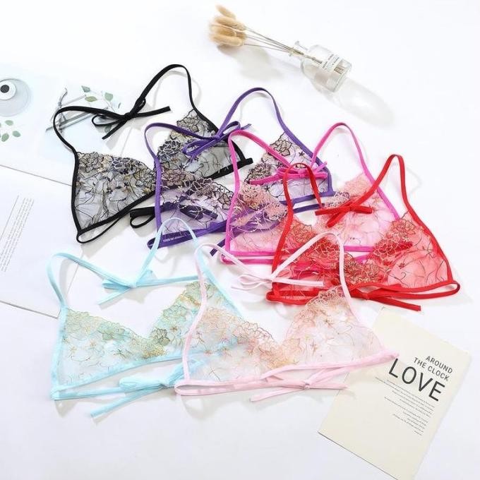 Lingerie Sexy Bikini Malam Pola Bordir Transparan Bra Set Wanita A1370 Original