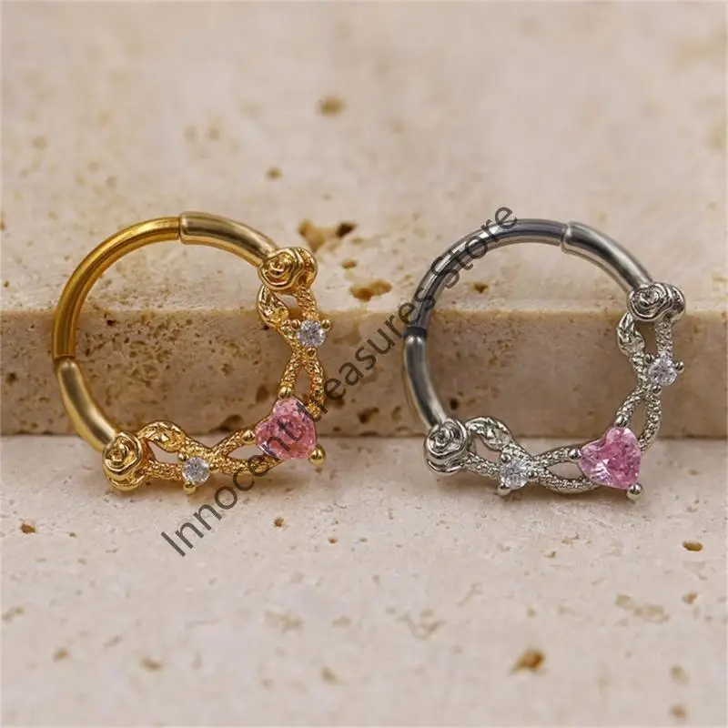 3XUA Round Crystal Nose Piercing Ring Silver Septum Jewelry Body Accessory for Women