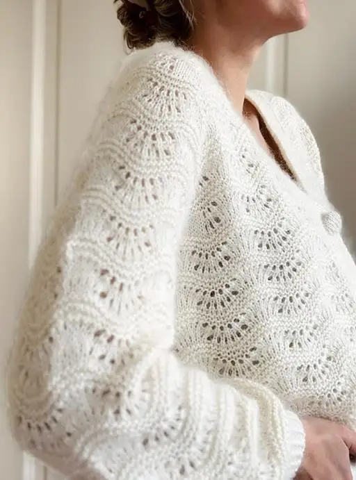 Sexy Mesh Hollowed Out Wide Truffle Waist Long Sleeved V-Neck Knitted Sweater for Autumn, Elegant Button Knit Jacket for Women