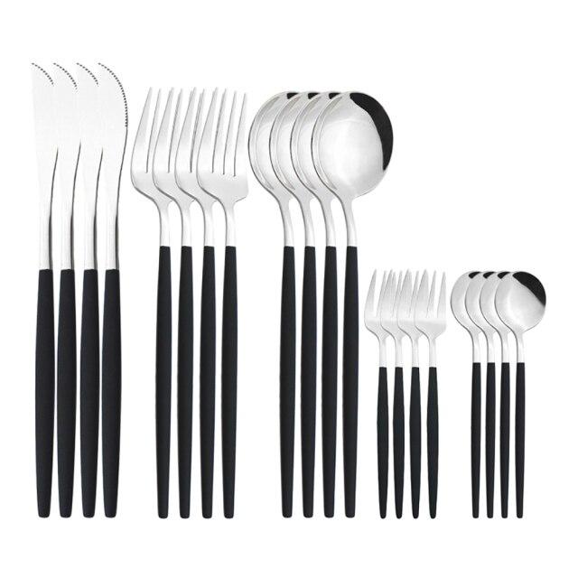 Зеркальный золотой набор столовых приборов Ножи Вилки для торта Фрукты Кофейная ложка Столовое серебро Посуда Столовая посуда из нержавеющей стали Набор столовых приборов чёрный/серебряный