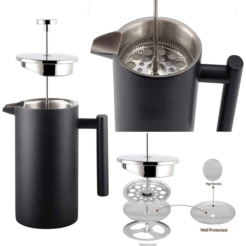 Зеркальный кофейный пресс с двойной стенкой, 8 чашек/1 литр, нержавеющая сталь марки 304