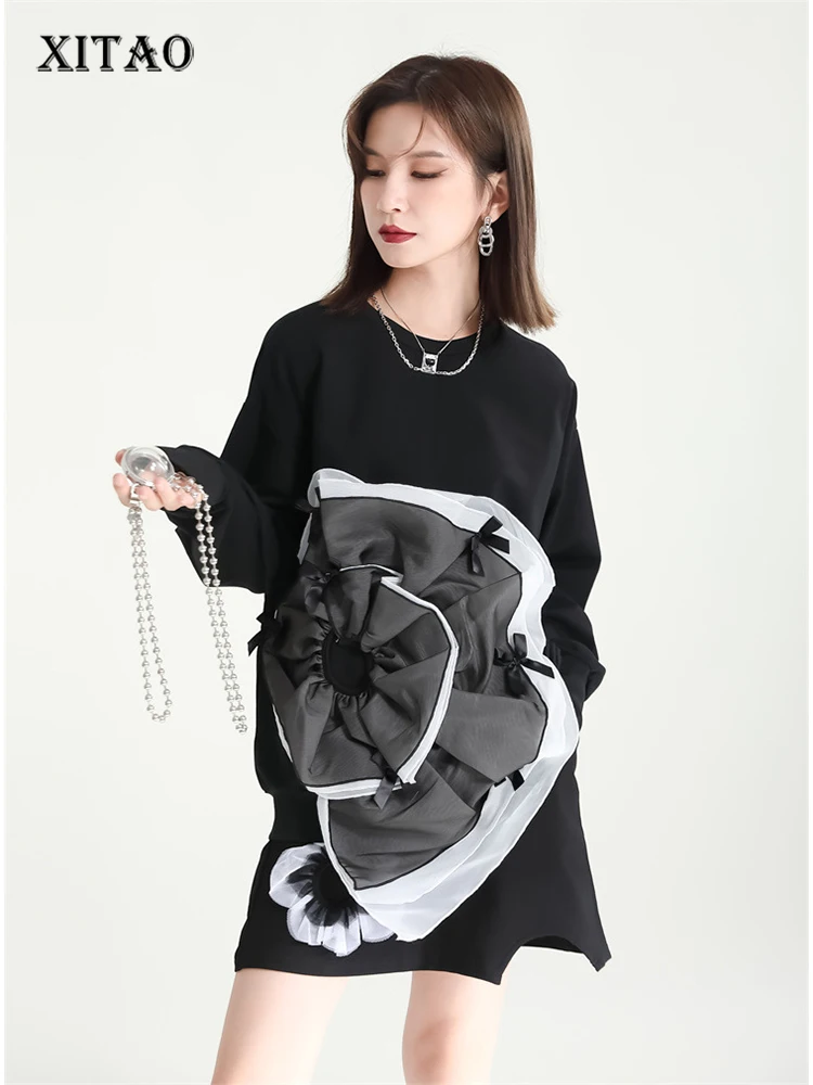 XITAO однотонная Асимметричная толстовка с капюшоном, женская модная свободная толстовка с круглым вырезом и длинными рукавами, Корейская Ос...