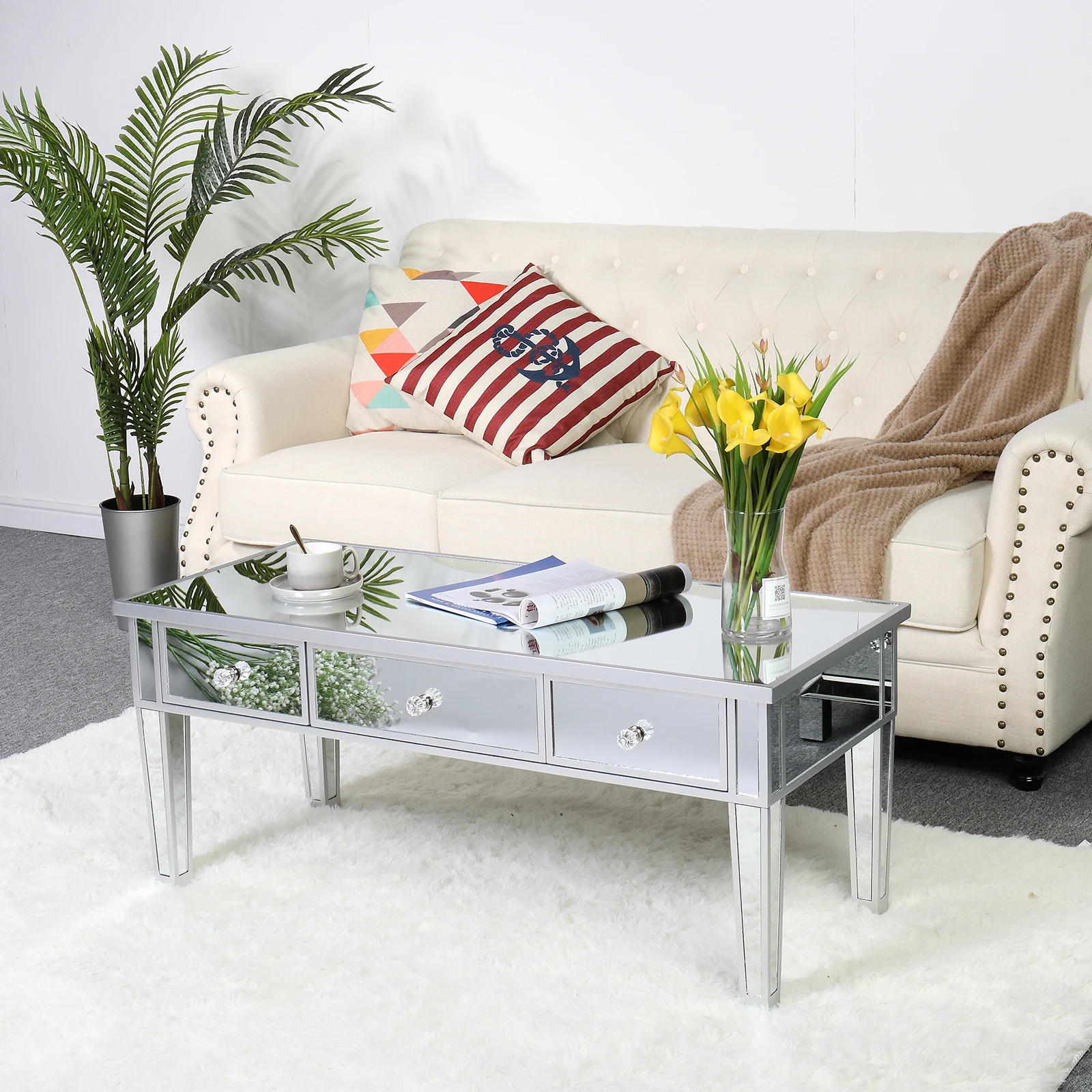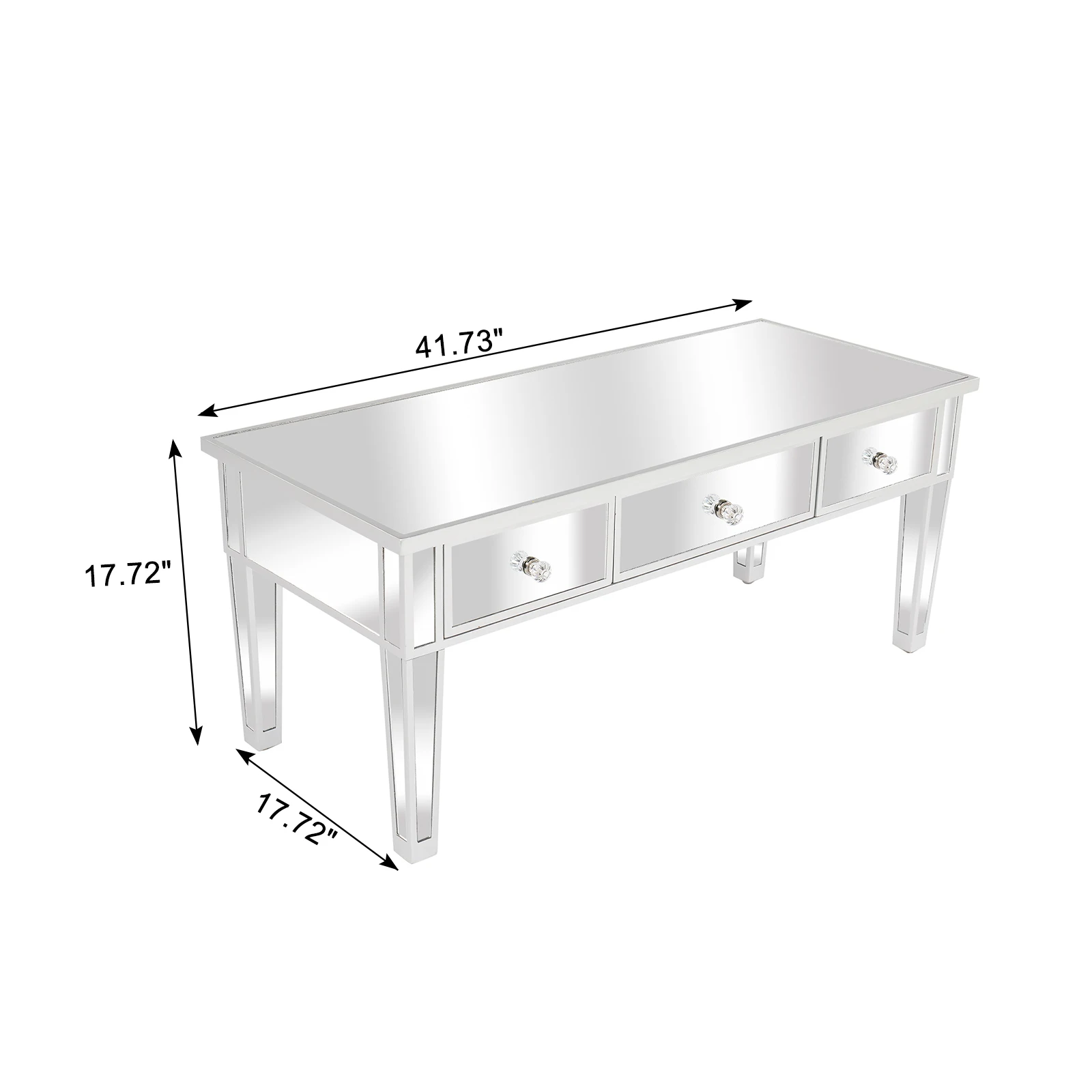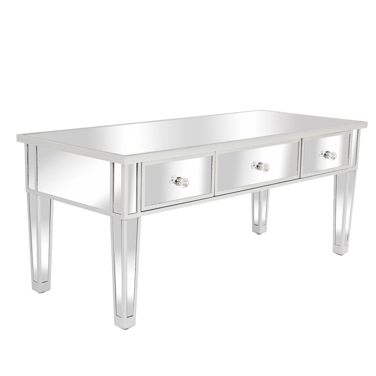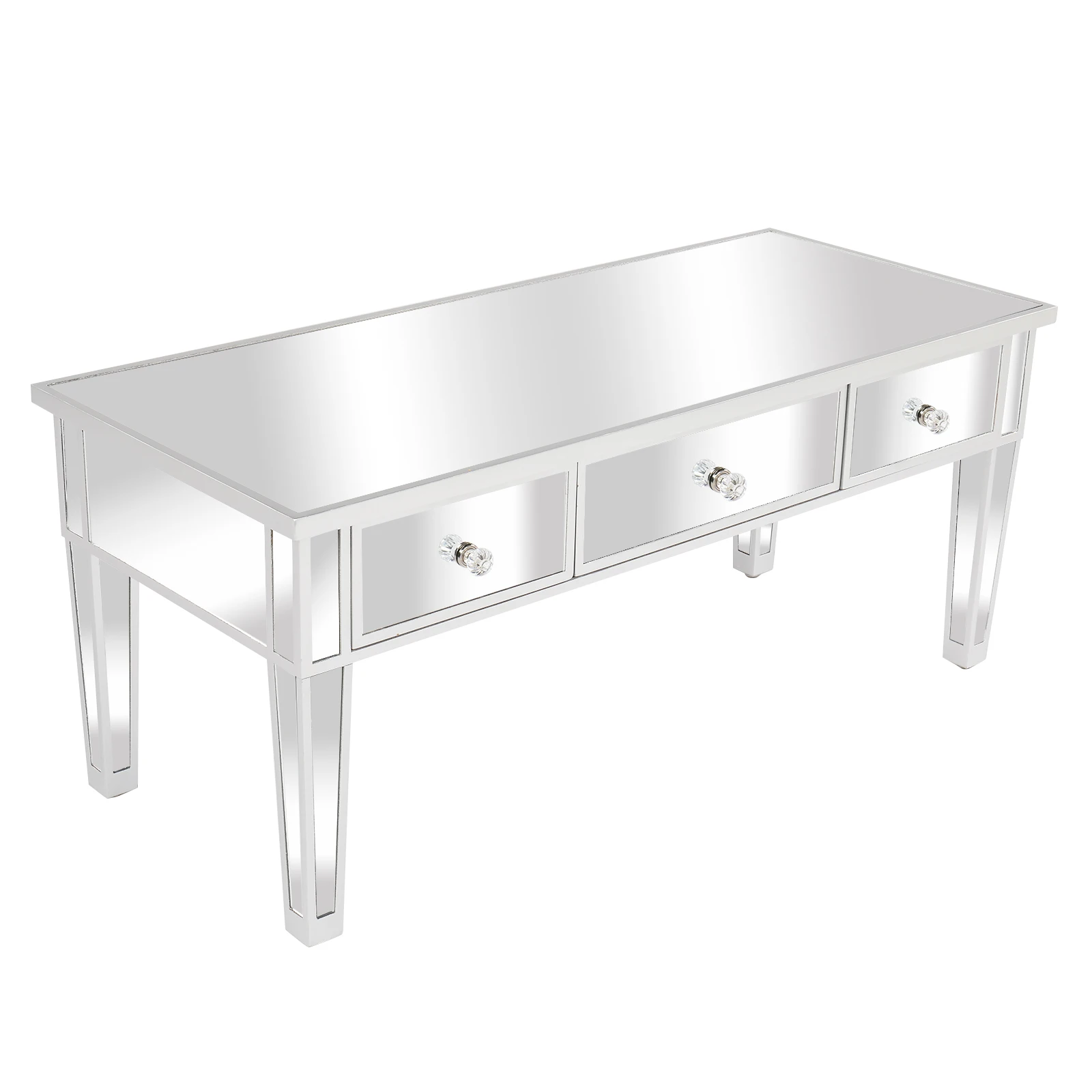 Зеркальный столик с тремя ящиками, 106x45x45 см, деревянный столик, серебристые прямые ножки, склад в США