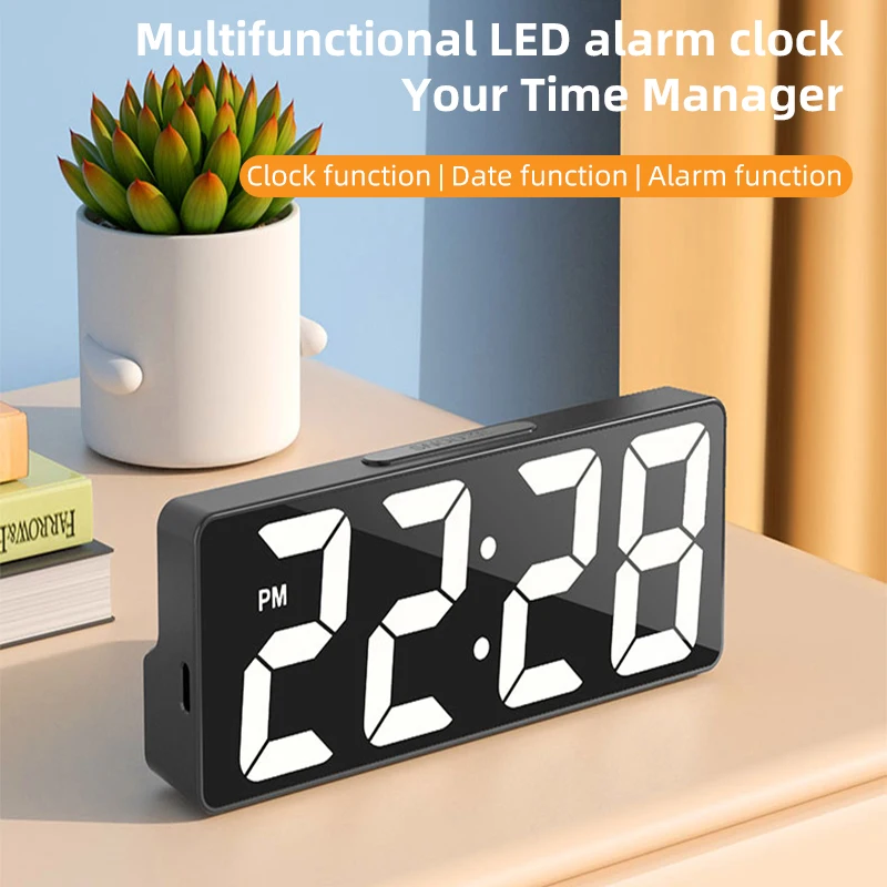 Зеркальный электронный будильник с голосовым управлением, 3D цифровой Настольный 4-значный USB-таймер