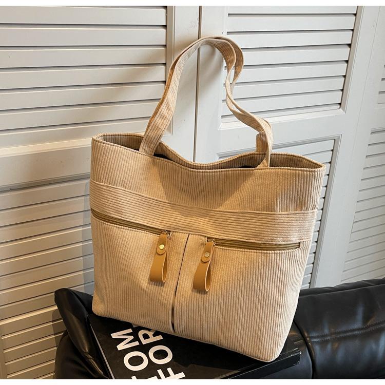 Зима новая личность 2025 тренд личность повседневная мода вельветовая ткань плечевая сумка-тоут хаки