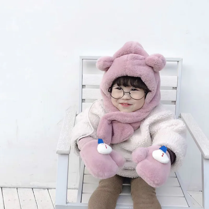 Зима 2020, новая мода, милый Рождественский Снеговик, Детская плюшевая шапка, шарф, перчатки, комплект из трех предметов, теплый и теплый комби...