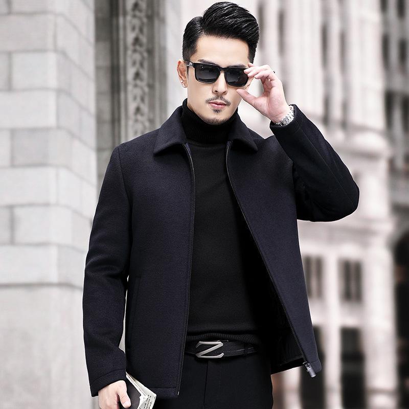 Зимнее джинсовое пальто мужское шерстяное шерстяное пальто с короткими лацканами для мужчин среднего возраста кашемировая куртка мужская 195