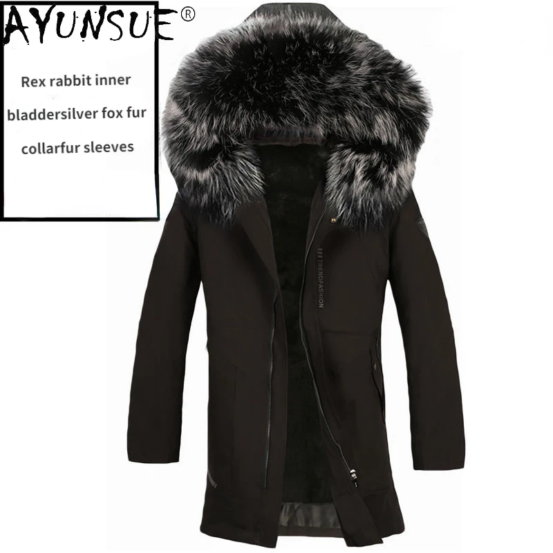 Зимнее меховое пальто AYUNSUE, мужские парки, Женское пальто со съемной подкладкой из синей лисы, Повседневная Теплая мужская меховая куртка, Chaquetas
