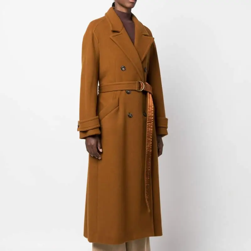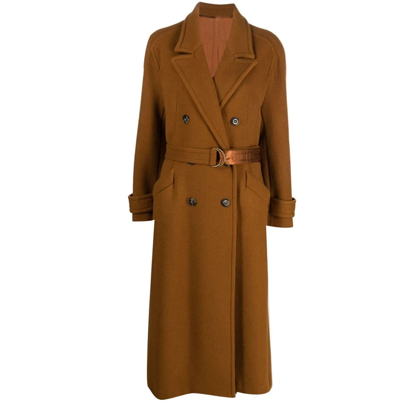 Зимнее новое шерстяное женское пальто с длинным рукавом, Модное теплое двубортное пальто с поясом