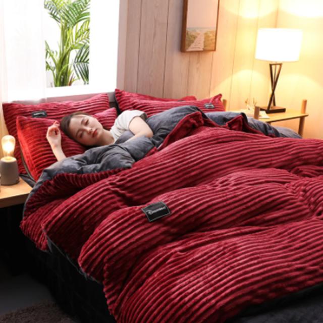 Зимнее фланелевое толстое пододеяльник из четырех предметов, наволочка из кораллового флиса, пододеяльник из трех предметов, постельное белье 180x220cm бордовый
