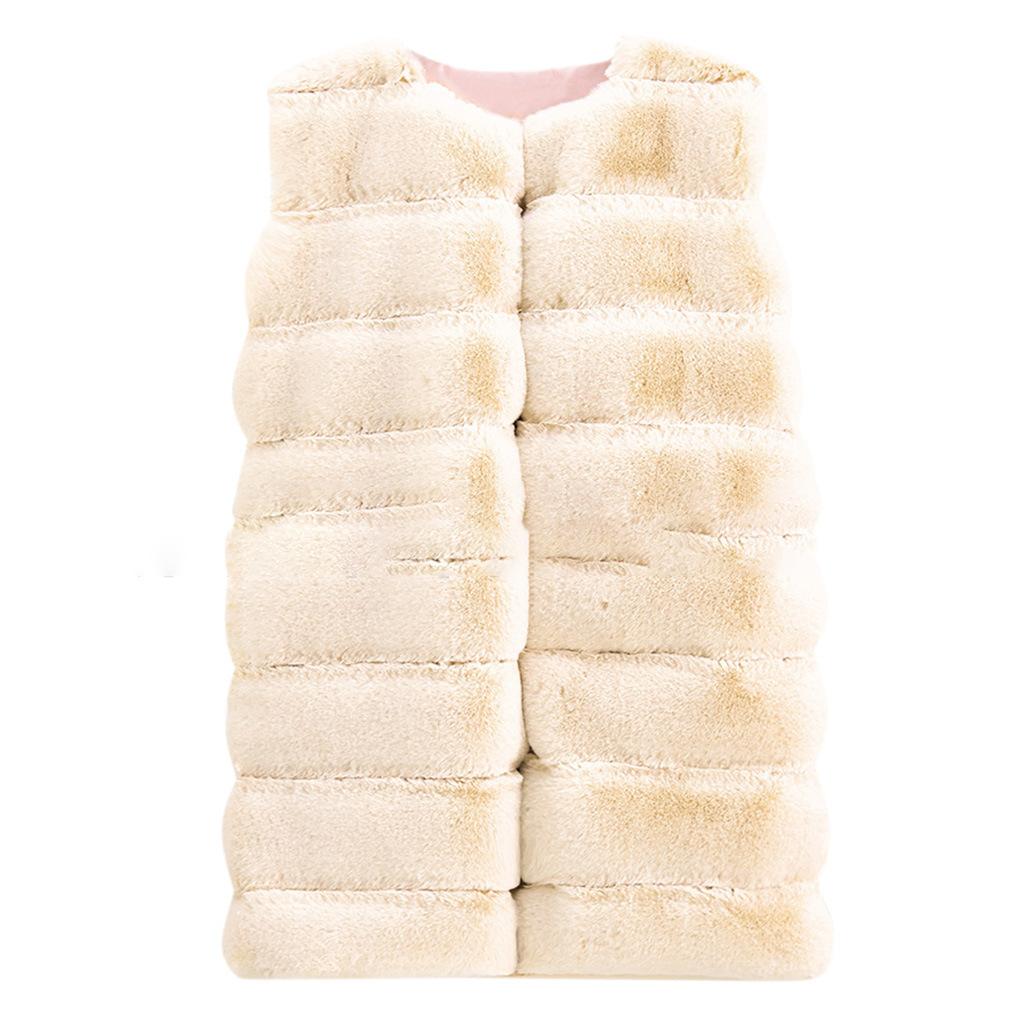 Зимне-осенний женский жилет без рукавов из искусственного меха, повседневный тонкий жилет, теплое пальто M бежевый