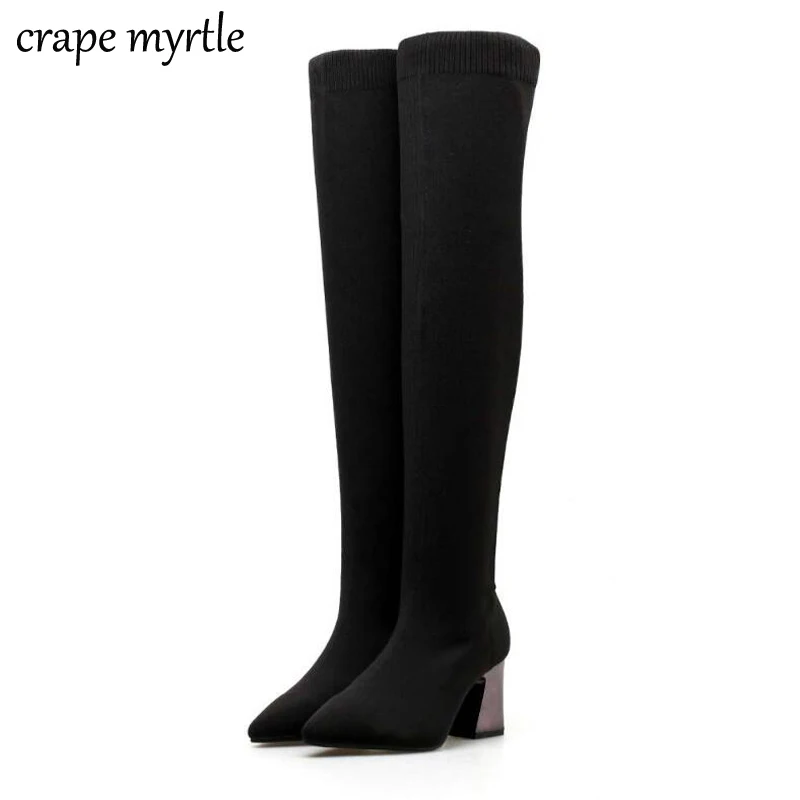 Зимние Сапоги выше колена, женские сапоги из эластичной ткани, привлекательная женская обувь до бедра, длинные женские сапоги YMA966