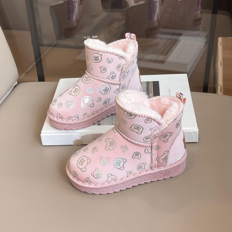 Зимние ботинки для девочек, новые зимние мягкие подошвы с шерстяной утолщенной обувью принцессы, детские хлопковые ботинки для мальчиков 36 розовый