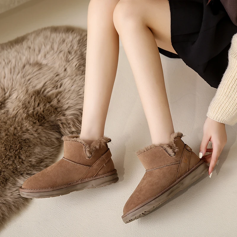 Зимние ботинки для женщин, зимние Утепленные бархатные ботильоны на низком каблуке, однотонные теплые и удобные женские ботинки с круглым носком