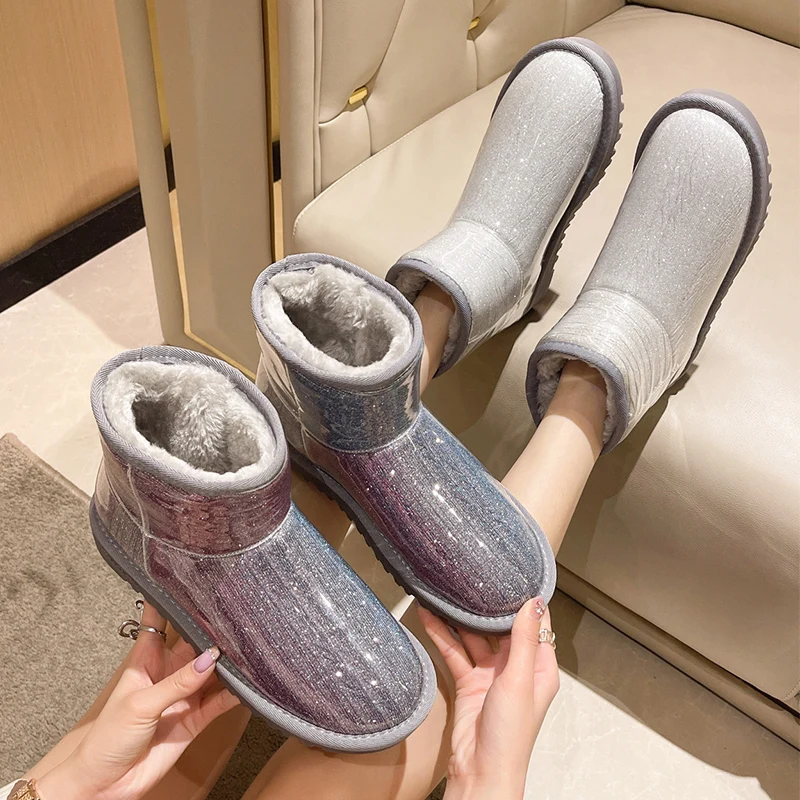 Зимние ботинки, женская обувь на плоской подошве, австралийские плюшевые роскошные дизайнерские ботинки с круглым носком, женские ботинки 2022 на низком меху, резиновые