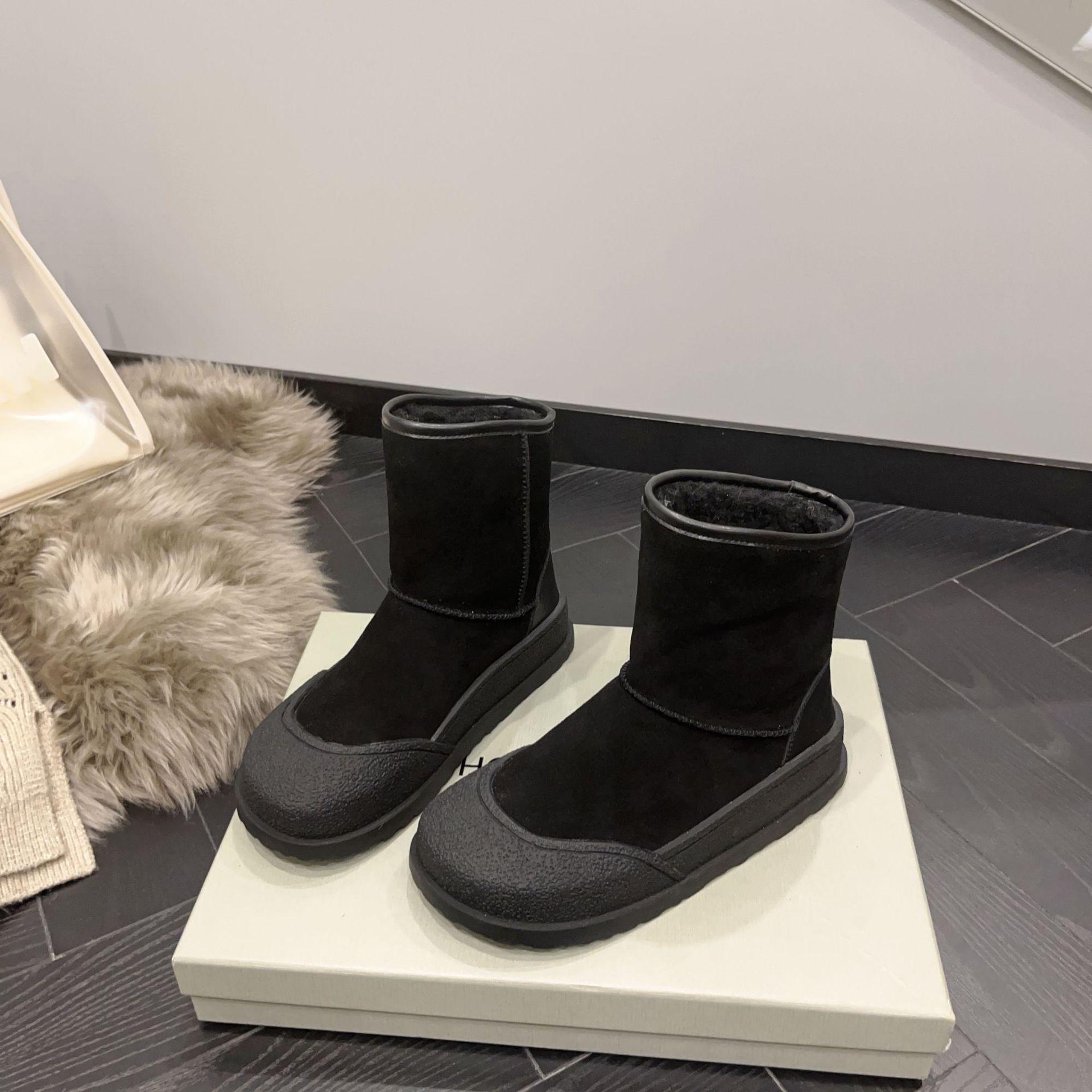 Зимние ботинки из натуральной кожи в стиле ретро 2023 года: Средняя длина, плюс бархат, плотный хлопок для женщин, зима/осень 36 чёрный