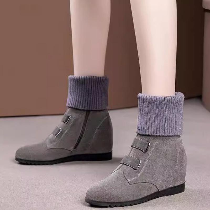 Зимние ботинки из натуральной кожи, женские, увеличивающие рост изнутри, короткие ботинки с толстой подошвой, плюшевые, теплые, шерстяные ботинки 39