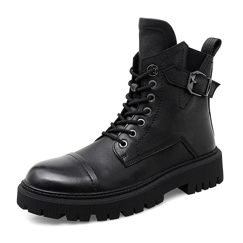 Зимние ботинки из натуральной кожи, черные теплые ботинки на толстой подошве с плюшевой платформой, универсальные мужские модные повседневные мужские моторизованные ботинки 38